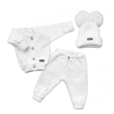 Pletená kojenecká sada 3D, svetřík, tepláčky + čepička Kazum, písková, vel. 80; 80 (9-12m)