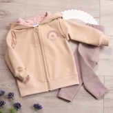 K-Baby Tepláková souprava s kapucí Duha - béžová/lila; 62 (2-3m)