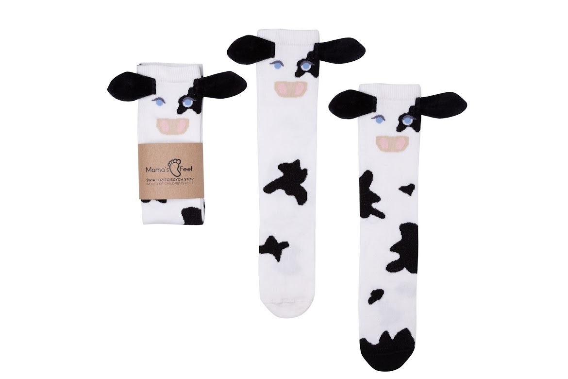 Dětské legrační podkolenky s kravičkou Eared Animals Dana bílé od značky Mama's Feet pohodlné spadá do kolekce bláznivých a veselých chlupáčů. Nabízející se v různých velikostech pro děti od 1 roku až do 6 let. Podkolenky Mama's Feet jsou elastické, dobře drží na nohou a nedělají zářezy okolo lýtka.
