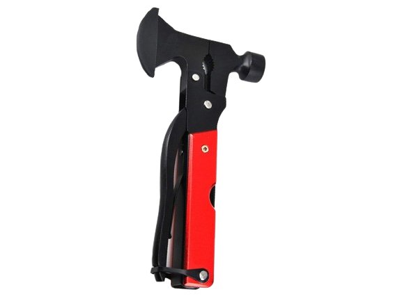 - Multifunkční: Obsahuje 17 nástrojů v jednom, včetně sekyry, plochého šroubováku, pilota, škrabky na ryby, otvíráku na láhve, pily na dřevo a dalších.