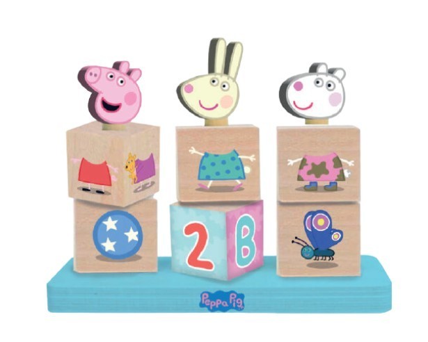 Dřevěné kostky Prasátko Pepa. Tyto dřevěné kostky je možné kombinovat společně postavičkami ze seriálu Prasátko Pepa.Z devíti kostek lze vytvářet různé figurky, oblčky, čísla, písmena a zvířátka. prečítať celé