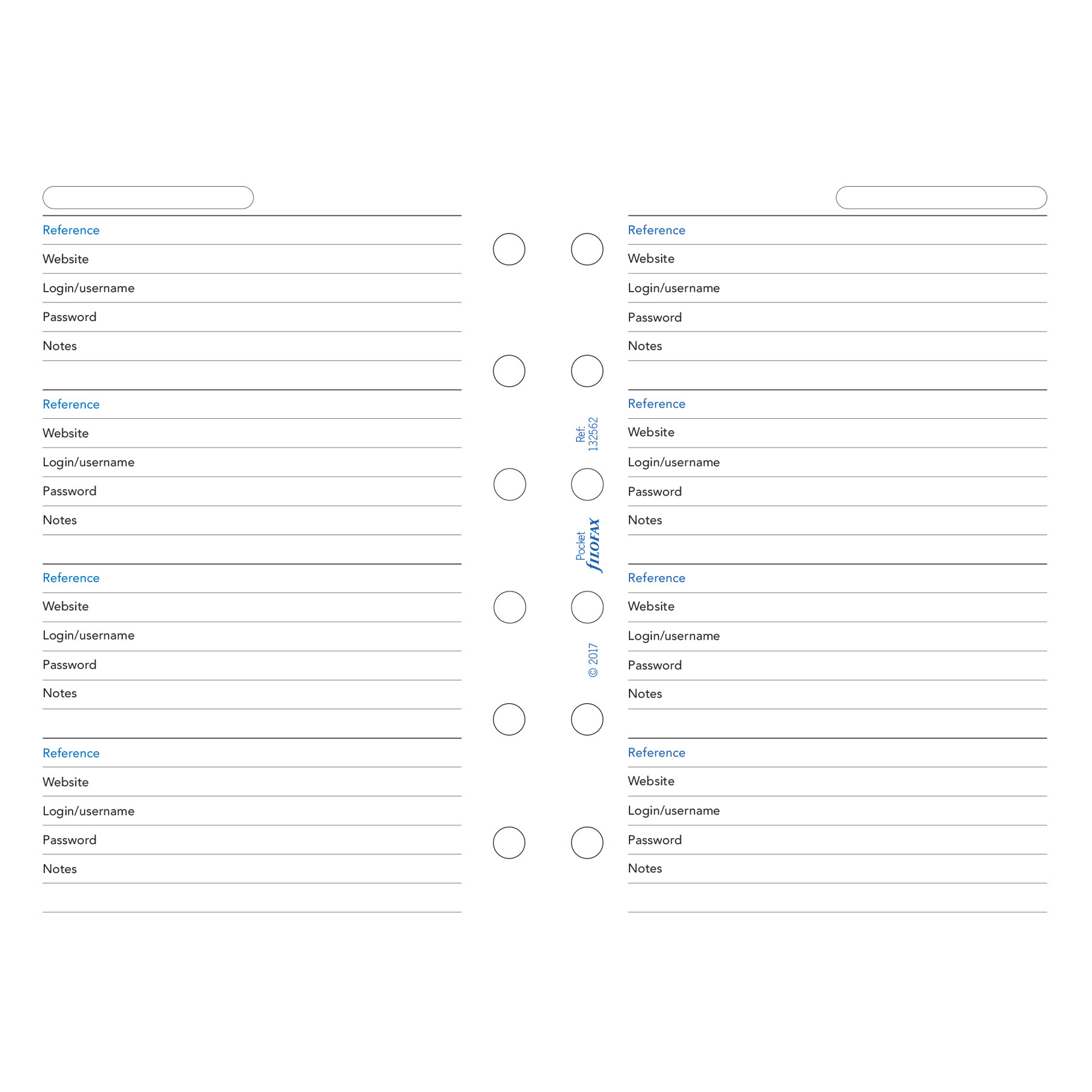 Filofax, Seznam hesel pro diáře, kapesní, bílá