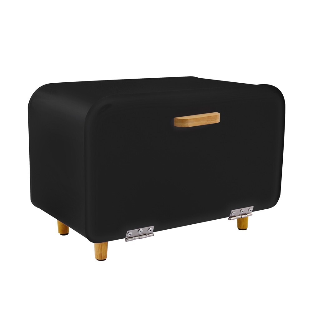 HOME ELEMENTS-HR Chlebník kovový s lakovanou vrstvou a bambusovým dřevem, barva černá