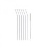 Vialli Design Skleněné brčko bílé, zahnuté 230 mm, 6 ks + kartáček, 6643