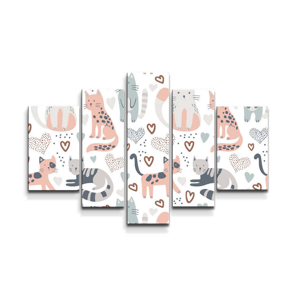 Obraz - 5-dílný Malované kočičky: 125x90 cm