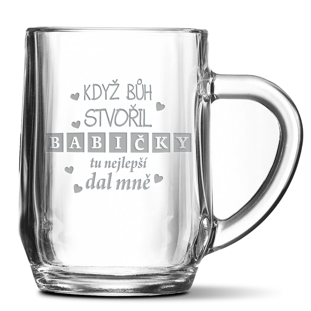 Půllitr na pivo s originálním motivemPůllitr s originálním motivem je krásným dárkem pro všechny pivaře, kteří neradi zapadnou v davu. Potěšte svého tatínka nebo třeba dědečka originálním půllitrem s osobním věnováním. Gravírování je z jedné strany, takže pravák ho při pití má na straně k...