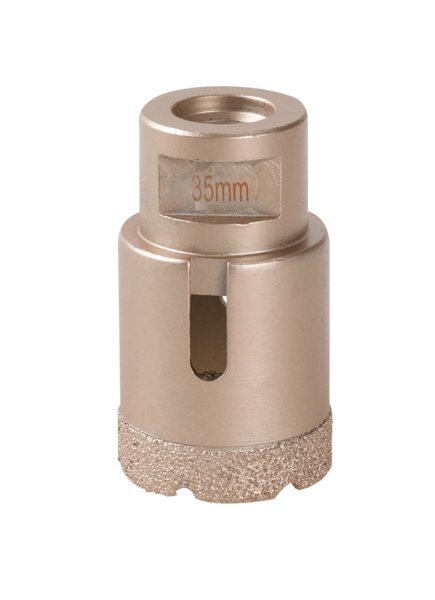 profesionální vykružovací diamantová korunka se závitem M14 - pro úhlové brusky pro "suché" přesné a rychlé vrtání do kamene, dlažby, obkladů, žuly, mramoru a jiných extrémně tvrdých materiálů nejen ve stavebnictví výška vrstvy diamantu 10 mm, dlouhá životnost bez nutnosti použít jakýkoli...