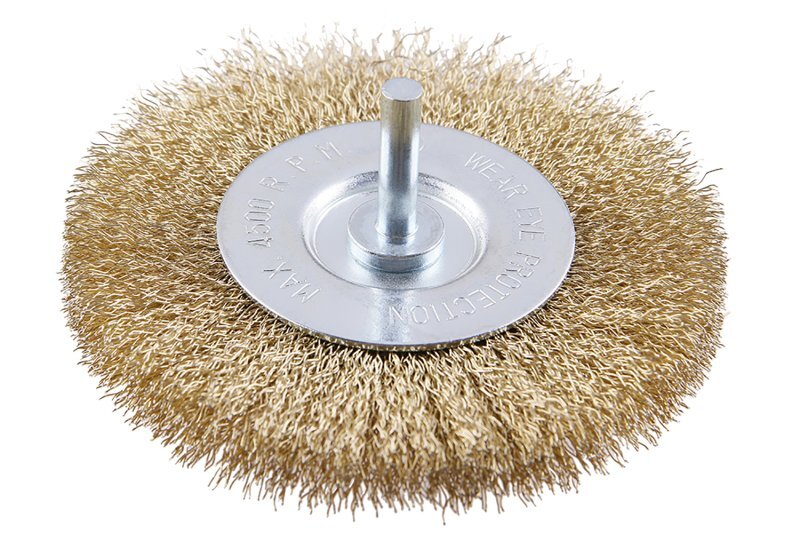 Rotační kartáč - okružní, provedení : vlnitý drát 0,25 mm - pomosazený, průměr 100mm, stopka 6 x 27 mm, pozinkované tělo kartáče, počet drátů : 1800, délka drátu : 23 mm, max. přípustné otáčky: 4500 1/min Použití: pro leštění, zdrsňování, ostranění rzi a otřepů. prečítať celé
