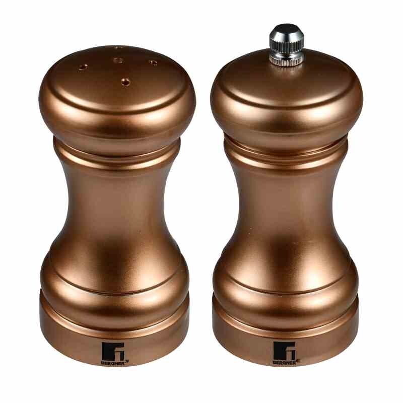 • Sada mlýnků na sůl a pepř 2 ks.• Vyrobeno z odolného ABS plastu.• Keramický mlýnek.• Slánka 5x5x10,2 cm a mlýnek na pepř 5x5x11,3 cm.• Vnější provedení v barvě mědi.
