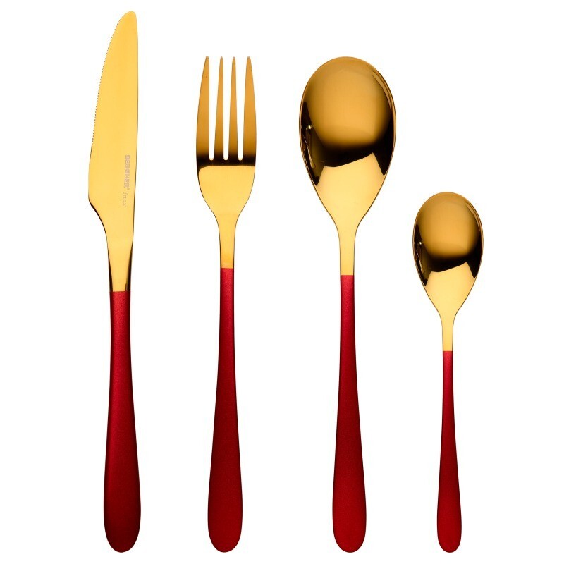 • Nerezové příbory. Bergner, červená Lisboa kolekce 16 nerezových příborů zaručujících velkou odolnost a dlouhou životnost příborů. • Sada příborů sestávající ze 4 lžic, 4 nožů, 4 vidliček a 4 čajových lžiček. • Elegantní design. Je ideální pro zvláštní příležitosti, jídlo nebo zvláštní událost...