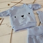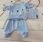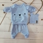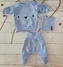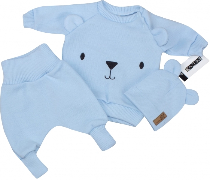 Pletená kojenecká sada 3D Medvídek, svetřík, tepláčky + čepička Kazum, modrá, vel. 74; 74 (6-9m)