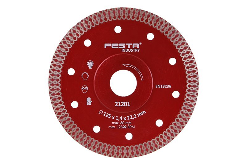 profesionální diamantový turbo kotouč FESTA INDUSTRY - extra tenký jen 1,4 mm kvalitní diamantová vrstva se speciálním tvarem segmentů a vysokým obsahem diamantového prachu -rychlé a přesné řezání, dlouhá životnost přesné zpracování - napojení na nosný disk kotouče odolávající vysokým teplotám,...
