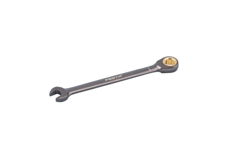 ráčnové klíče FESTA jsou vyrobeny kováním z kvalitní chromvanadiové oceli ocel povrchově upravená matným tvrdochromem pro dosažení optimální povrchové tvrdosti a odolnosti vůči korozivním vlivům rohatku ráčny klíče tvoří 72 kalených zubů, záběr po 5-ti obloukových stupních kvalita, tvrdost a přesnost klíčů odpovídá normě DIN/ISO
