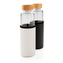 Skleněná láhev na vodu od značky XD Design je alternativou v boji proti jednorázovým plastovým lahvím. Vybavena ochranným rukávcem pro pohodlnou manipulaci a víčkem z bambusu.Elegantní minimalistický design a objem 550 ml z ní dělá ideálního každodenního parťáka pro váš pitný režim. BPA free.