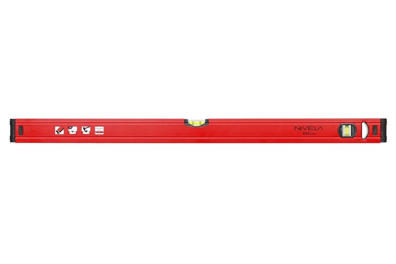 vodováha se dvěma libelami přesnost 1 mm / 1 m hliníkový profil - síla stěny 1,4 mm optická libela s fluorescenční kapalinou - lepší viditelnost v horších světelných podmínkách vnější rysky na libele pro sklon 2 % gumové koncovky - ochrana při pádech prečítať celé