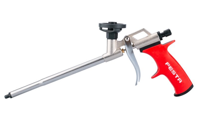 profesionální celokovová pistole na PU (polyuratové) pistolové pěny plynulá regulace množství pěny, citlivá spoušť pro přesné a pohodlné dávkování, plastové aplikační trubičky pro přesné nanesení pěny na požadované místo závit pro uchycení s teflonovou vrstvou pro snadnější čištění teflonová kulička ventilu, vyměnitelná tryska 38030