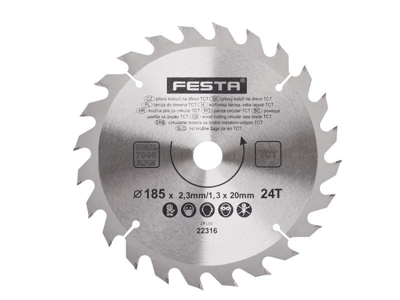 pilový kotouč s SK plátky tělo kotouče z kvalitní uhlíkové oceli (HRC:40) břitové destičky SK ( slinutý karbid ) tvrdost HRA 90 střídavý zub - pozitivní úhel čela 15° zářezy po 90° do vnitřní části chrání před přehřátím a deformací kotouče specifikace uvedeny na těle kotouče