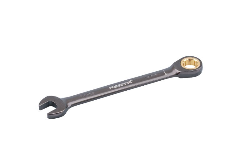 ráčnové klíče FESTA jsou vyrobeny kováním z kvalitní chromvanadiové oceli ocel povrchově upravená matným tvrdochromem pro dosažení optimální povrchové tvrdosti a odolnosti vůči korozivním vlivům rohatku ráčny klíče tvoří 72 kalených zubů, záběr po 5-ti obloukových stupních kvalita, tvrdost a přesnost klíčů odpovídá normě DIN/ISO