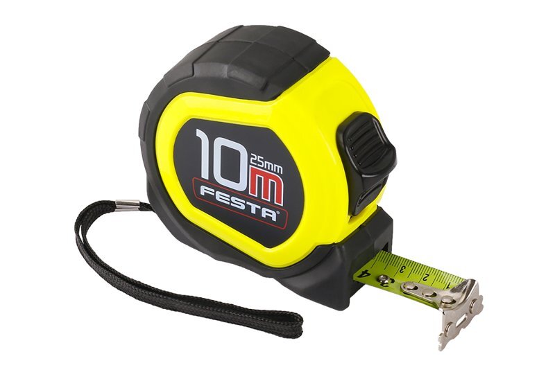 svinovací metr FESTA magnetic II. třída přesnosti, CE - certifikát, metr vhodný ke kalibraci kalená páska, fluorescenční vrstva - dobře čitelná stupnice i v horších světelných podmínkách, magnetický háček pouzdro metru z ABS plastu s gumovou ochranou - vyšší odolnost proti poškození při nárazech, lepší manipulace a úchop metru poutko, klip na opasek