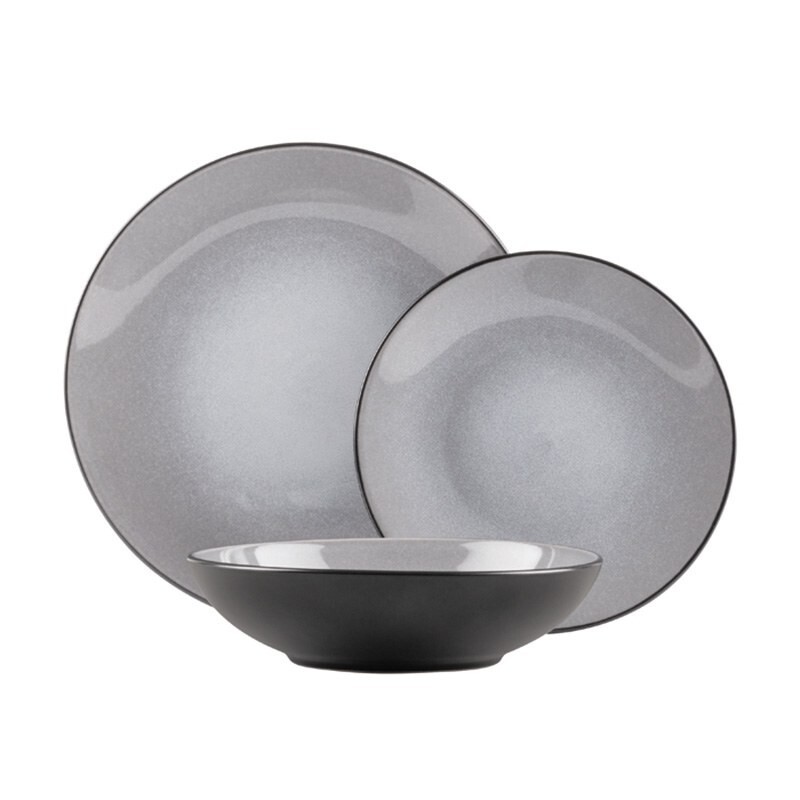 Materiál: kameninaObsahuje:Sada obsahuje: 6 ks plytkých talířů: 26,8*3 cm6 ks polévková / salátová míska: 20,5*5,3 cm6 ks dezertních talířů: 21*2,5 cmBarva: šedá aspenkamenina prémiové kvalityElegantní designLze mýt v myčce nádobíVhodné do mikrovlnné trouby prečítať celé