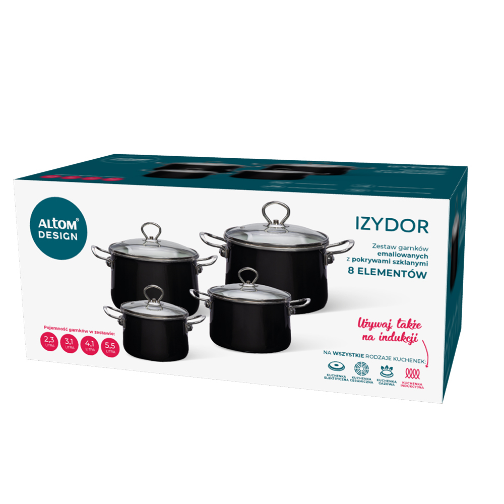 8-DÍLNÁ SADA SMALTOVANÝCH HRNCŮ IZYDOR ČERNÁ