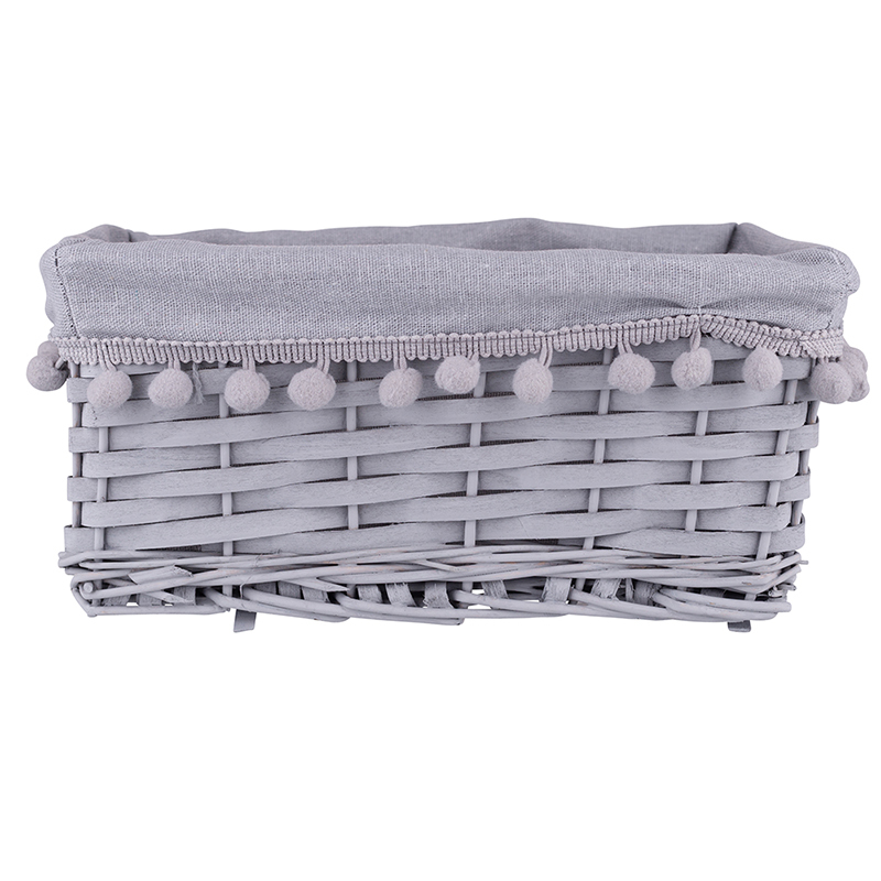 ŠEDÝ KOŠÍK S POMPONKY 30X21X13CM