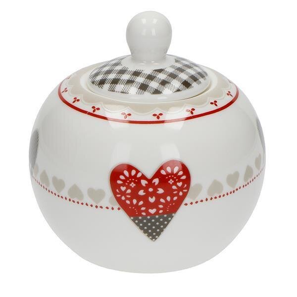 Cukřenka z porcelánu v bílé/červené barvě se vzorem srdce.