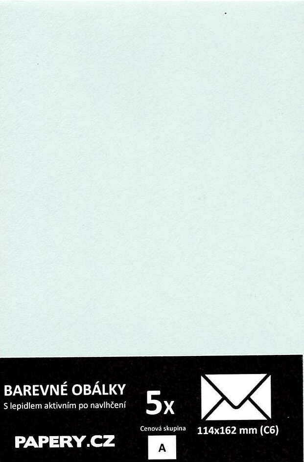HYBLER S.R.O. barevná obálka 114X162 mm PASTELOVÁ ZELENÁ, 5 kusů, 120 gm2, olizová HBLR108