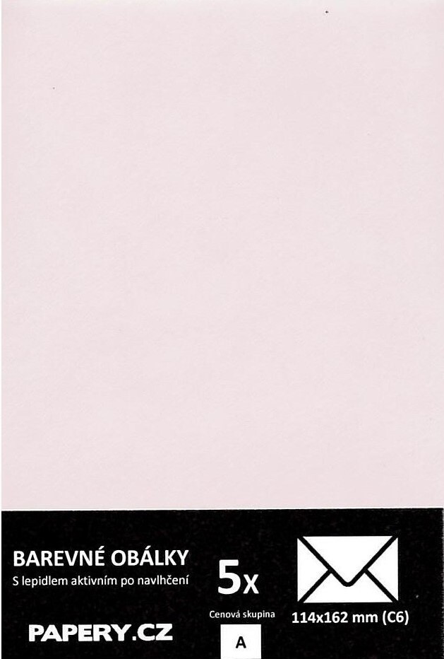 HYBLER S.R.O. barevná obálka 114x162 mm PASTELOVÁ RŮŽOVÁ, 5 kusů, 115 gm2, olizová HBLR111