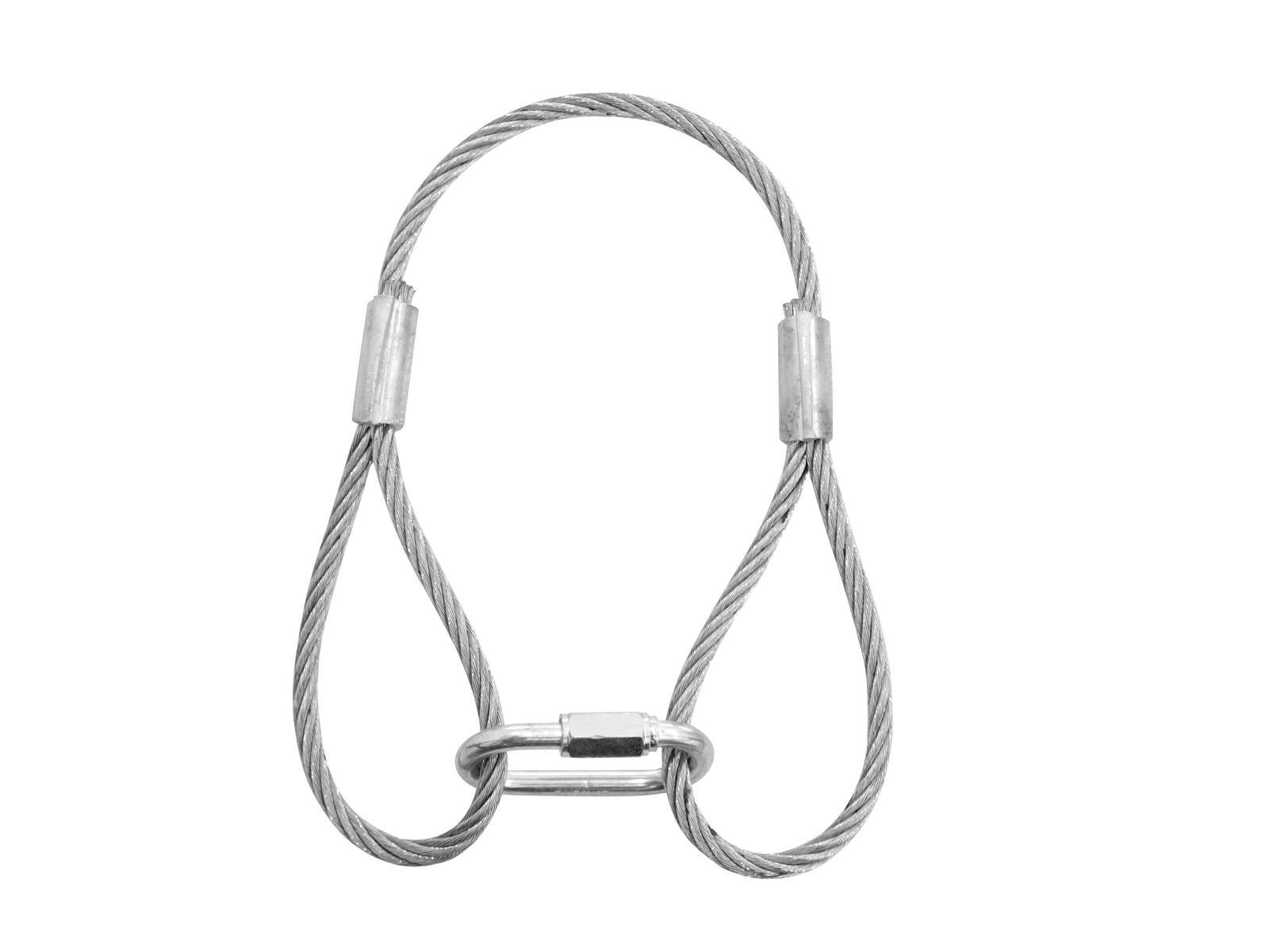 Ocelové lanko, 400 x 6 mm, stříbrné - prosté ocelové lanko. Vhodné pro instalace světel. Se dvěma smyčkami. 6 mm karabina (typ A) součástí balení.