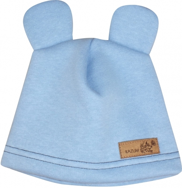 Teplá dětská čepice Kazum, bavlněná s oušky, modrá; 56/62 (0-3m)