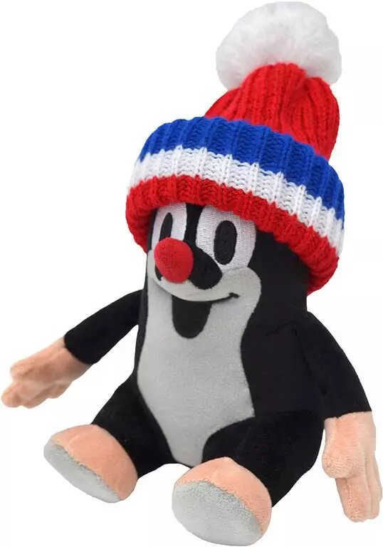 Sedící plyšový Krtek se sundávací čepicí (červená trikolora), který po zmáčknutí náhodně přehrává vybrané originální zvuky z pohádek o Krtečkovi prečítať celé