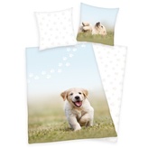 HERDING Povlečení Štěně na louce Bavlna, 140/200, 70/90 cm