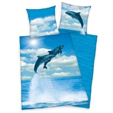 HERDING Povlečení Delfíni Bavlna, 140/200, 70/90 cm
