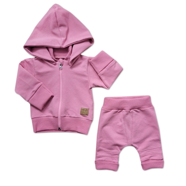 2-dílná bavlněná tepláková souprava s odepínací kapucí - růžová, vel. 68; 68 (3-6m)