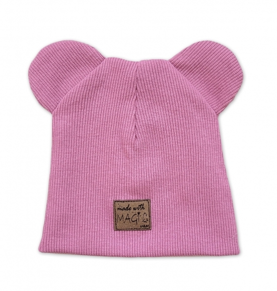 Dvouvrstvá žebrovaná čepička s oušky Magic - růžová, vel. 68/74; 68/74 (6-9m)