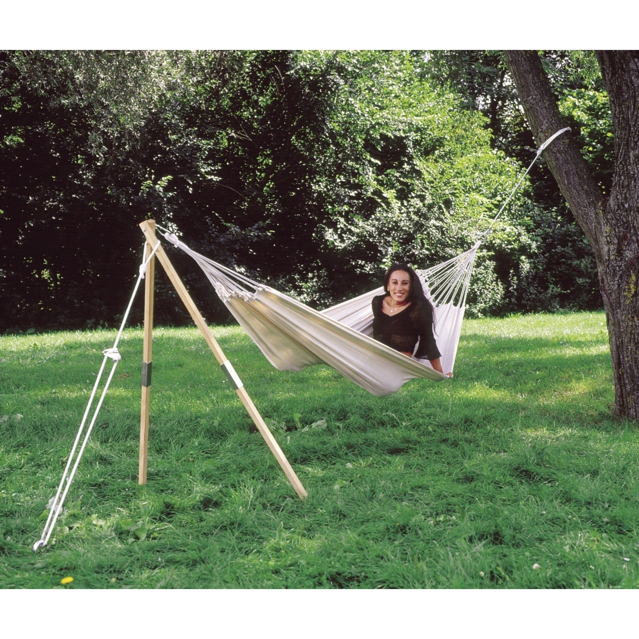 Jednoduchý skládací dřevěný stojan pro houpací sítě, který Vám nahradí chybějící strom (druhé lano sítě je tak nutné upevnit ke stromu).Součástí dodávky je nerezový kolík do země a délkově nastavitelné lano. prečítať celé