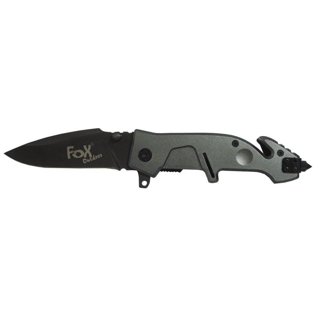 Dobře vybavený masivní kapesní nůž od značky Fox Outdoor. S hladkým ostřím, čepel je broušená do mírného oblouku. Na zadním konci střenky se nachází nástroj pro přeřezávání lan nebo popruhů a také hrot pro rozbíjení skleněných tabulí. Tyto nástroje se mohou hodit například při vyprošťování v...