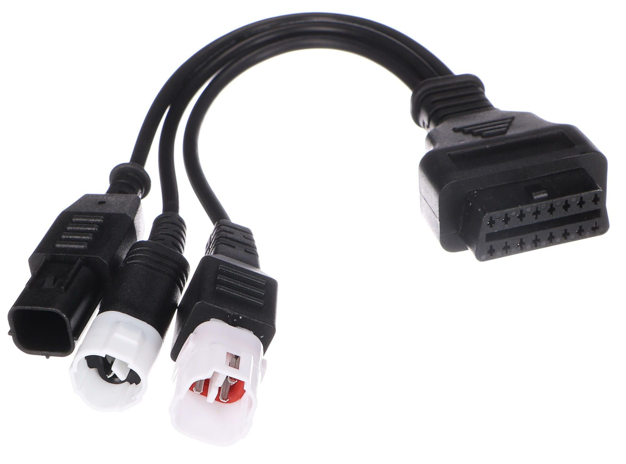 Tato OBD-II redukce je určena speciálně pro moto Yamaha a Honda. Slouží k propojení 3-pin/4-pin/6-pin zásuvky u moto Yamaha a Honda se standardní 16-pinovou OBD-II zástrčkou.