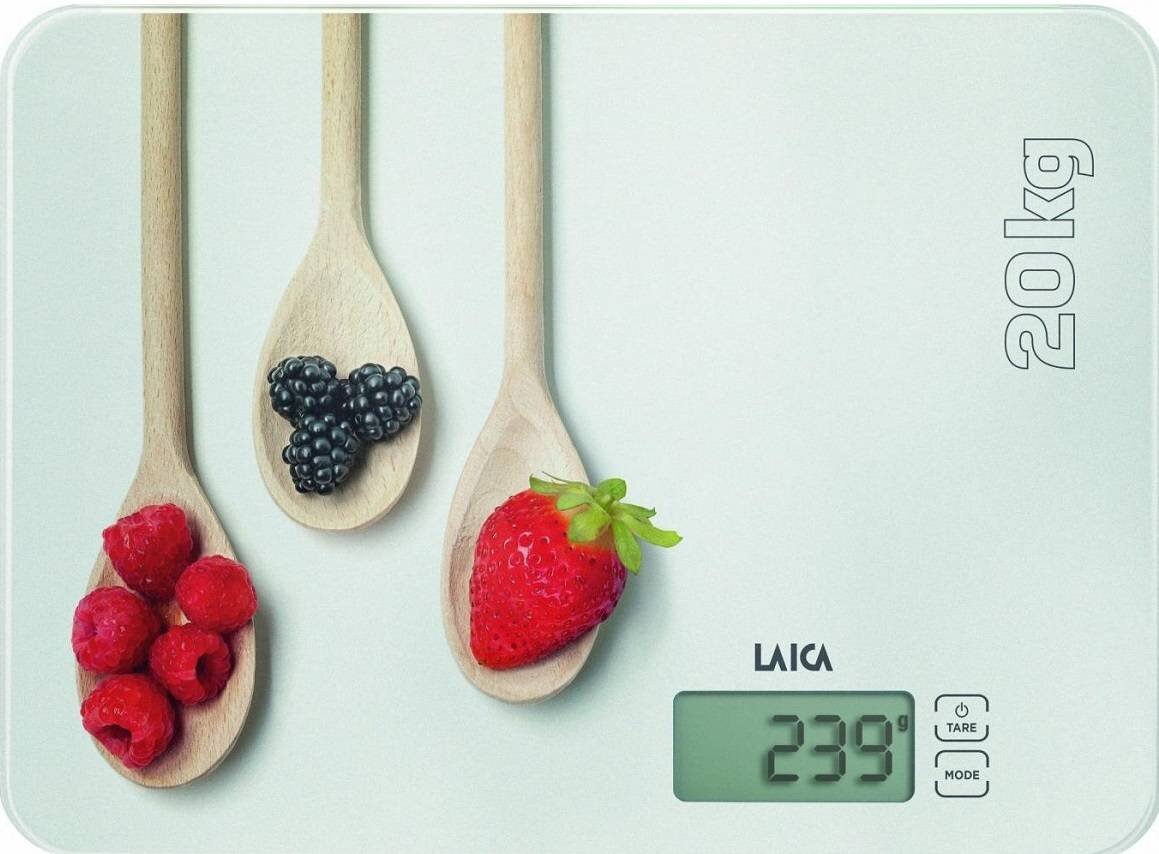 Maximální nosnost 20kg Přesnost vážení 5g Funkce Tara Dotyková tlačítka 60 sekundové zobrazení naměřené hodnoty na displeji Displej: LCD, 6,1 x 2,8 cm Rozměry: 30 x 22 x 2,1 cm Povrch z tvrzeného skla 3mm Baterie: 2 x AAA (nejsou součástí balení Italský design s vrchním potiskem – vařečky s...