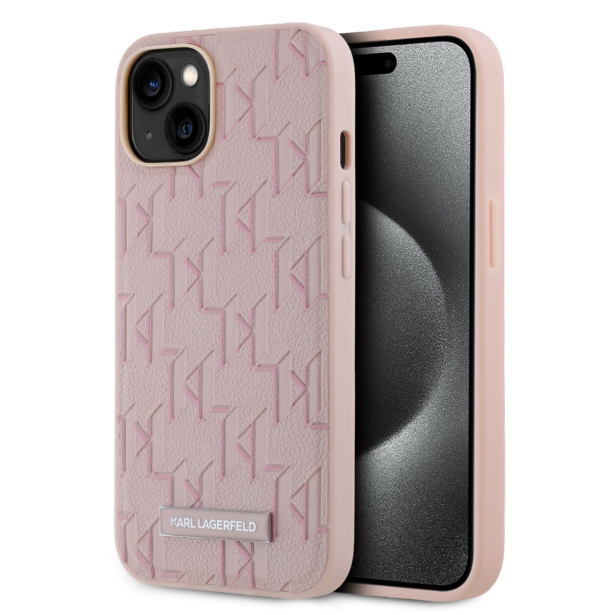 Karl Lagerfeld PU Leather Monogram Metal Logo Magsafe Zadní Kryt pro iPhone 14 Pink