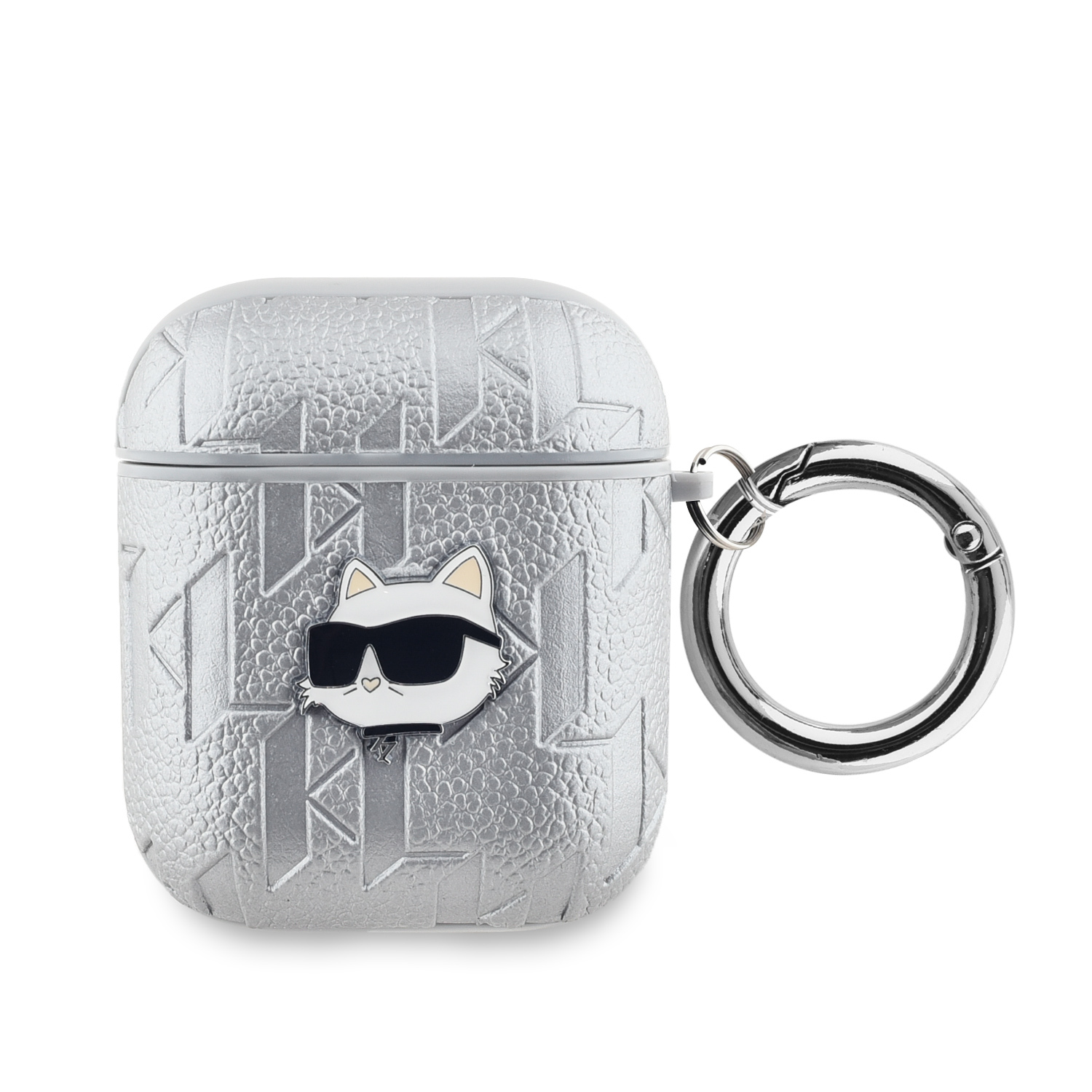 Karl Lagerfeld PU Embossed Choupette Head Pouzdro pro AirPods 1/2 Silver