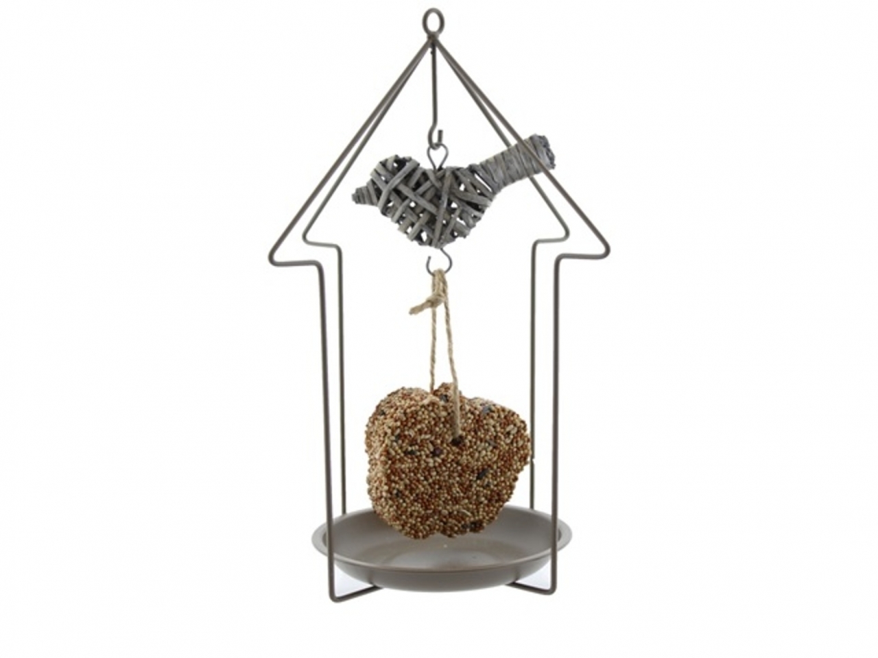 Kovové krmítko pro ptáky s proutěným ptáčkem. Krmení není součástí balení.Materiál: kov, proutíRozměry:Výška 30 cmŠířka 21 cmHloubka 15 cm prečítať celé
