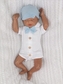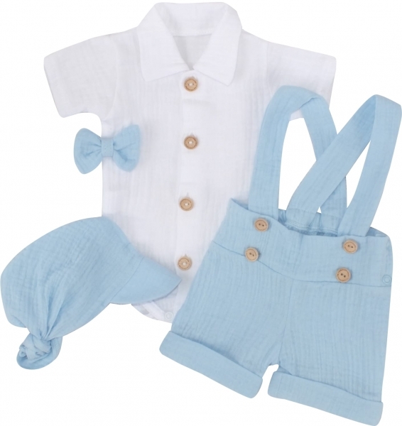 Mušelínové kraťasy s láclem, bodýčko, čepička, motýlek 4D sada, Z&Z, modrá/bílá; 56 (1-2m)