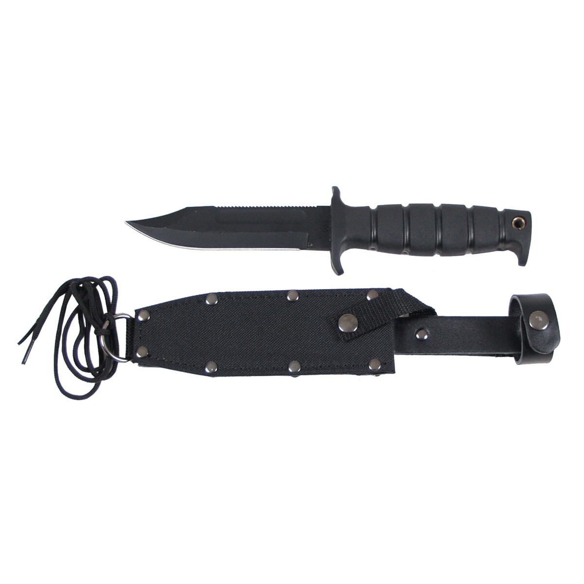 Replika pilotního nože (dýky) SP2 Air Force Survival. Vlastnosti: • černěná čepel • hřbetní pilka • ergonomická rukojeť s chráničem prstů • nůž se dodává s pouzdrem a šňůrkou • pouzdro má zapínání na druky a poutko pro zavěšení na opasek (pouzdro je vyrobeno z nylonu a z koženky) Hmotnost: nůž: 290 g pouzdro: 80 g