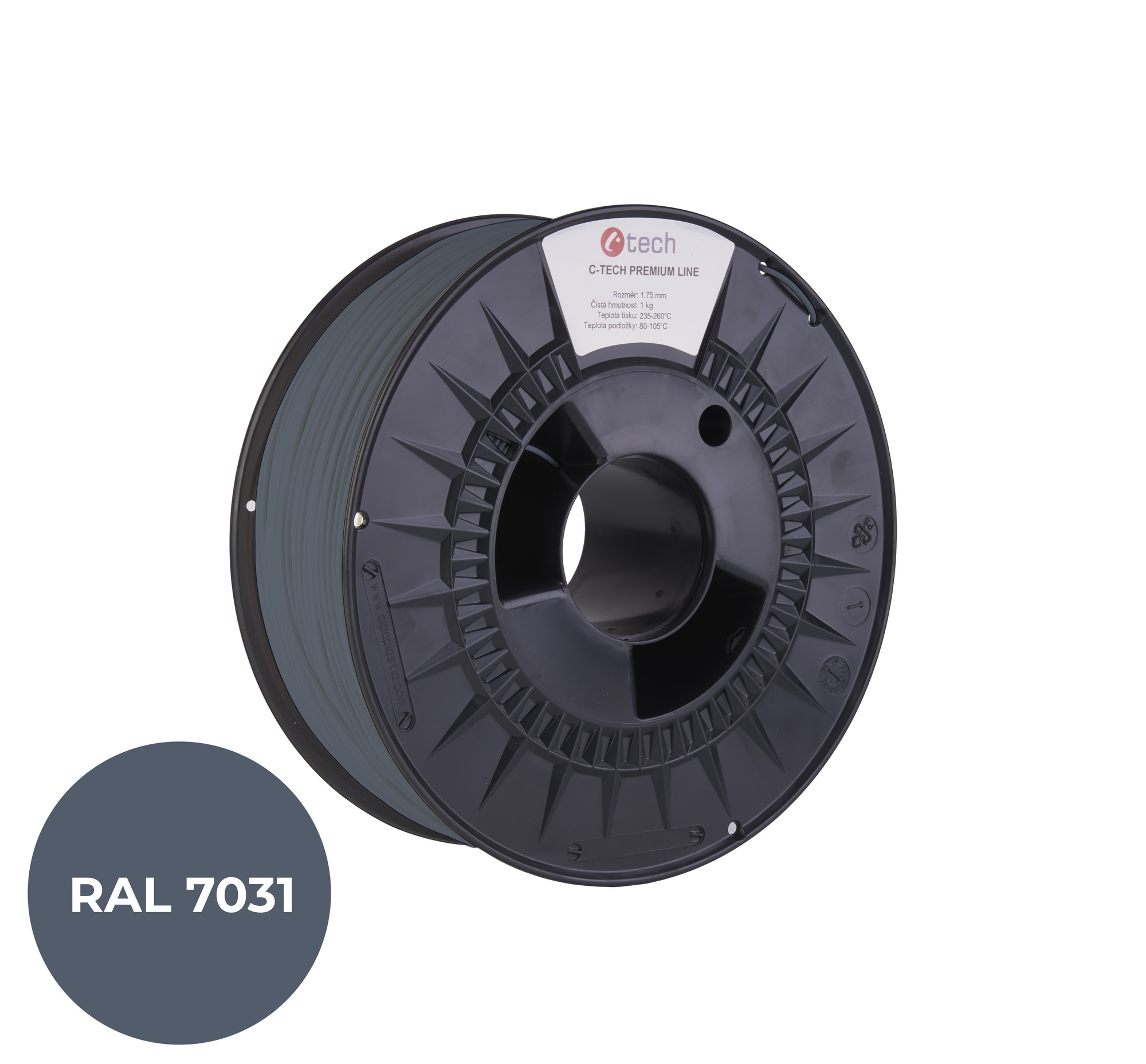 Tisková struna (filament) C-TECH PREMIUM LINE, PLA, šedomodrá, RAL7031, 1,75mm, 1kg