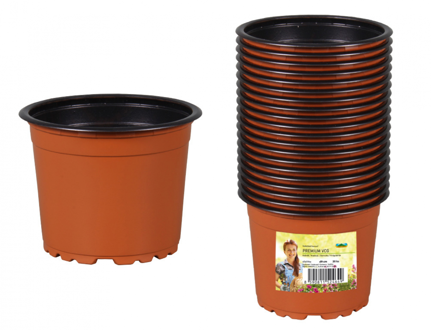 20 kusů plastových lehčených v půldorysu kruhových květníků v barvě terakota. Používají se zejména pro předpěstování rostlin a pro umístění do různých obalů určených pro květníky s rostlinama v interiéru i v exteriéru. Rozměry 1ks: d. 9 x 6,9cm. Rozměry 20ks: d. 9 x v. 16,8cm.
