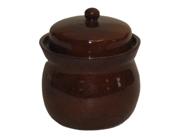 Keramický glazovaný hnědý lesklý 2l zelák s víkem bez uch. Zelák je v půdorysu kruhový. Tvar má nedovřené koule, která se u horního okraje vázovitě rozevírá. Zelák se používá ke kvašení a skladování zelí a pro jinou podobně zpracovanou zeleninu. Rozměry: d. 19 x v. 21cm. prečítať celé