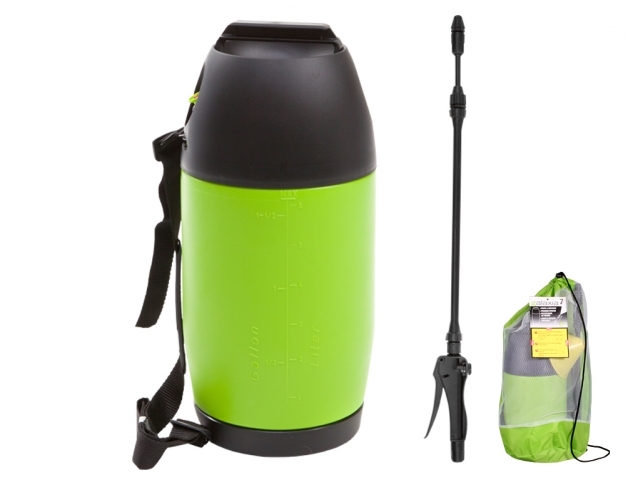 Plastový tlakový ramenný postřikovač o objemu 7,2l. Postřikovač je designově navržený, kdy má v půdorysu tvar válce a v řezu tvar oválu se zarovnaným dnem. Láhev na postřikovací kapalinu je zelená a plynule navazující víčko s tlakovačem, hadička s postřikovací částí a popruh jsou v černé barvě. V...