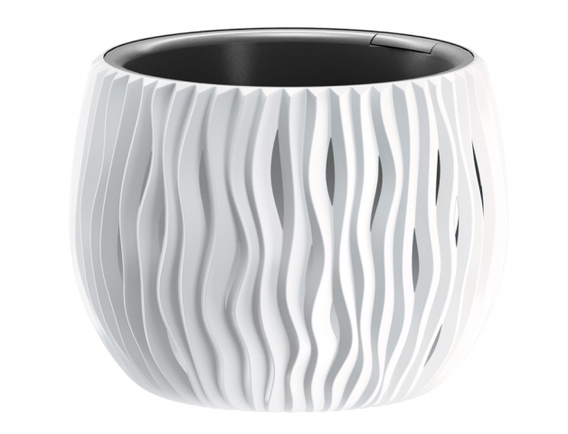 Matný plastový obal na květník s vnitřní vložkou. Je inspirován ručně tvarovanou tradiční keramikou. Hra světla dodává drážkám 3D rozměr. Průměr: 37 cm, výška: 21 cm. Barva: bílá. prečítať celé